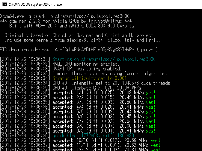 ccminer-x64.exe -a quark -o stratum+tcp://jp.lapool.me:3000 -u ****.****** -p ****